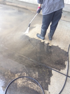 同様に柵や壁、床のジェット洗浄します。
