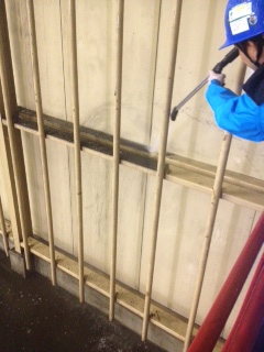 フォークリフト等のばい煙による汚れの除去のご依頼を受けました。